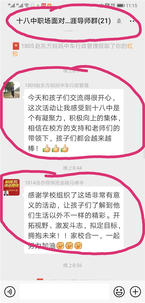每个嘉宾都做了非常精心的准备,制作PPT,拍摄工作相关影音资料,提炼智慧,这份用心感染着每一个听讲的人。“很多都是书本上学不到的东西”“近距离接触了职场专业人士,加强了对这个行业的了解”、“关于未来,我看得更清晰了,减少了迷茫!”、“增强了学习动力,找到了目标和方向”,学生反馈收获多多,热烈期盼着类似的活动能多开展。“学校开展这样的活动非常有意义,感谢学校为孩子们的成长精心谋划、务实组织”,家长们也纷纷点赞。